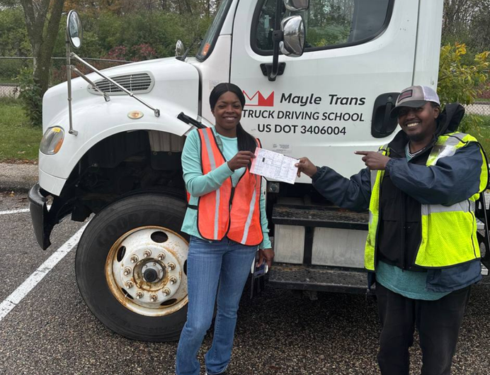 We have worked hard to foster a sense of community at Mayle Trans. Earning your CDL could feel intimidating for novice drivers, so we've made sure our lot is safe, comfortable & welcoming. There are also a combined over 5 languages spoken on our lot! Our students encourage one another & celebrate everyone's success.